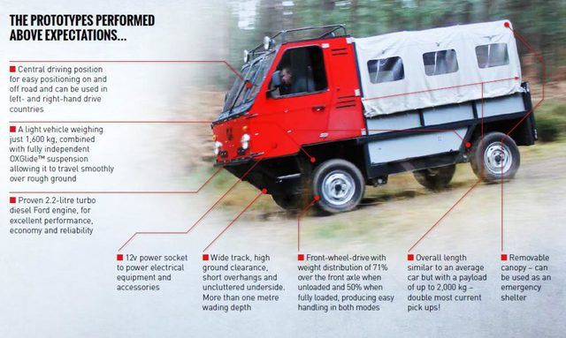 Numit OX, camionul a fost dezvoltat pentru filantropul Torquil Norman şi compania lui, Global Vehicle Trust. Primul prototip a fost creat în 2013, iar acum a fost prezentată o versiune rafinată a camionului. Până acum au fost investiţi în proiect 4 milioane de dolari.