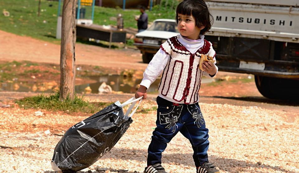 Alexandru îşi ia angajamentul ca, împreună cu ceilalţi copiim să păstreze curat locul de joacă.