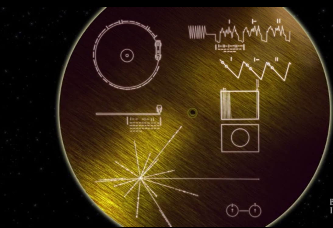 Aşadar, cercetătorii de la NASA au inventat un cod pe care oricine din univers l-ar putea înţelege. Aceştia au început prin a prezenta de coperta CD-ului cea mai cunoscută moleculă din univers, atomii de hidrogen. Diagrama prezintă tranziţia dintre doi atomi de hidrogen, civilizaţia care va înţelege această tranziţie va putea concluziona că în urma ei sunt eliberate radiaţii. Perioada fiecărei unde fiind de 0,0000000007 secunde. Această perioadă este utilizată ca unitate de măsură principală, restul diagramelor de pe coperta înregistrării.