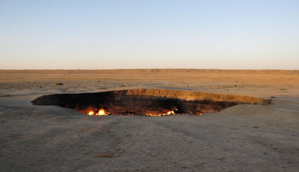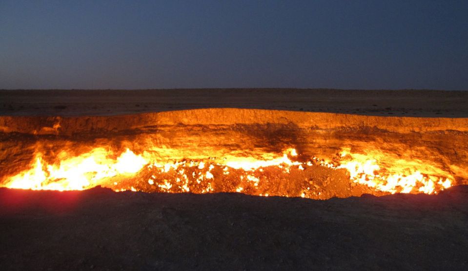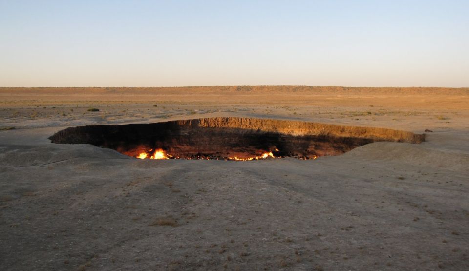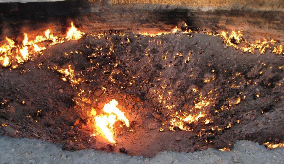 Geologii i-au dat foc pentru a preveni emanarea gazului metan, iar de atunci arde în permanenţă. Diametrul acestui crater este de 69 de metri, iar adâncimea sa de 30 de metri.