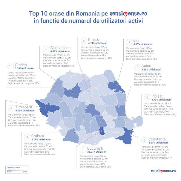 În medie, aproape jumătate din totalul utilizatorilor activi au un animal de companie sau îşi doresc unul, cel mai mic procent înregistrându-se în Capitală. Aici doar 35% au un animal de companie.