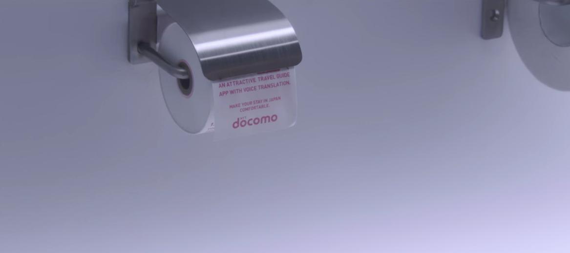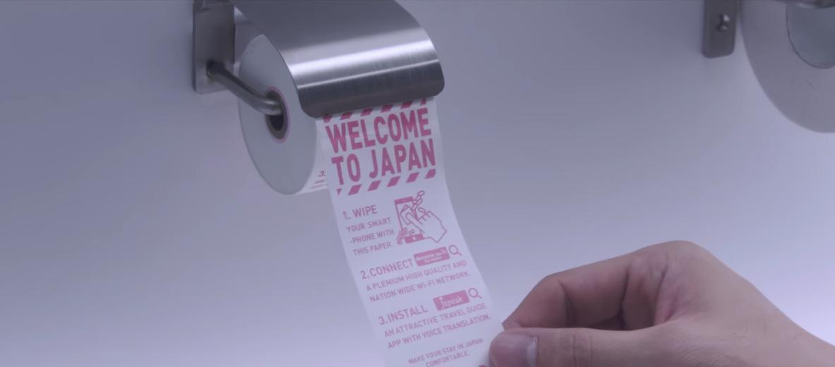 Pe lângă utilitatea sa principala, hârtia igienică pentru smartphone-uri face reclamă la serviciul de wifi al companiei NTT, dar şi la aplicaţia de ghid turistic, care le oferă informaţii traduse turiştilor.