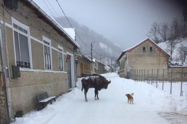 „De câteva săptămâni, pe uliţele satului Feneş, localnicii se întâlnesc pe uliţe cu un zimbru. pe care l-au şi hrănit în mai multe rânduri, motiv pentru care mamiferul a tot revenit în sat”, susţin reprezentanţii asociaţiei WWF-România, care a reintrodus zimbrii în sălbăticie, în Munţii Ţarcu.