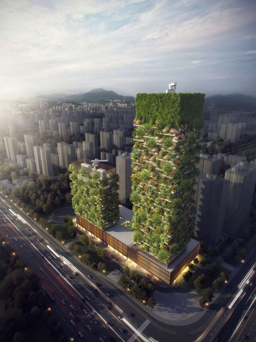 Firma doreşte să construiască prima dată două structuri pentru două turnuri în districtul Pukou, care vor fi completate în 2018. Turnurile ar fi acoperite cu 600 de copaci înalţi, 500 de copaci de înălţime medie şi 2.500 de plante târâtoare. În total, plantele ar acoperi 6.000 de metri pătraţi.