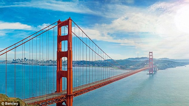Văzută prima dată, pare doar o imagine tipică a Golden Gate Bridge din San Francisco. La o apropiere, se observă maşina şi mai mult decât atât, se observă marca Bentley imprimată pe scaun (imaginile de mai jos).
