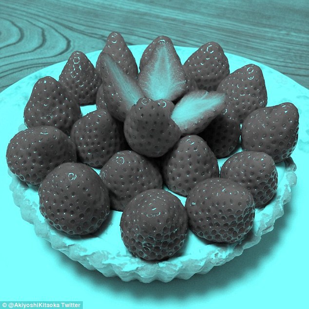 ,,Iluzia căpşunilor a fost realizată prin două metode. Deşi imaginea este creată doar din pixeli cyan (albastru şi verde) căpşunile par să aibă culoarea roşie,” spune profesorul Kataoka.