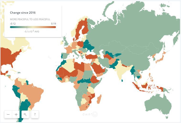 Indexul a urmărit o scală de la 1 la 5, cu 1 ca fiind cel mai paşnic, iar 5, cel mai puţin paşnic loc din lume.
