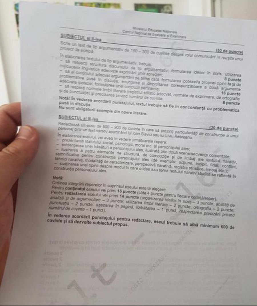 Subiecte barem ROMÂNĂ BACALAUREAT 2017. Elevii de clasa a XII-a, absolvenţi ai profilului Uman, au avut de caracterizat, la ultimul subiect, relaţia dintre două personaje dintr-un roman interbelic realist de Marin Preda. La al doilea subiect au primit un text argumentativ despre utilitatea activităţilor extraşcolare în educaţia cinematografică.