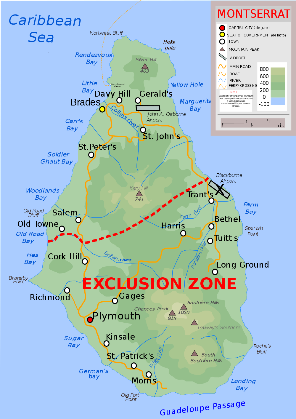 Pe 18 iulie 1995, vulcanul ”Soufrière Hills” a erupt după o perioadă de inactivitate de câteva sute de ani, îngropând în cenuşă oraşul Plymouth, capitala insulei. Zona a fost evacuată şi chiar şi acum există o zonă unde se poate intra numai cu permisiune, fiind unul dintre puţinele oraşe fantomă ale modernităţii.