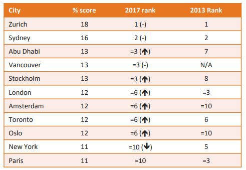 Aşadar, în ceea ce priveşte oraşul în care cei mai mulţi oameni de pe planetă şi-ar dori să trăiască, topul este condus de Zurich. Centrului global al băncilor şi finanţelor îi urmează îndeaproape metropola australiană Sydney şi capitala Emiratelor Arabe Unite, Abu Dhabi. Primul oraş european se regăseşte pe locul al cincilea şi este reprezentat de capitala Suediei, Stockholm.