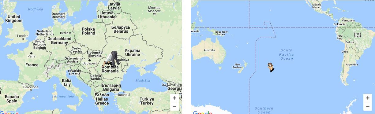 Din România dacă am crea un tunel până pe partea celalată a globului antipodul ar fi în zona sudică a Oceanului Pacific. Desigur acest lucru ar putea fi posibil doar dacă organismul uman ar putea supravieţui temperaturilor puternice din nucleul Pământului sau presiunii intense. Conform hărţii înafară de centrul Spaniei niciun alt loc din Europa nu ar duce într-un antipod uscat, majoritatea ducând în ocean.
