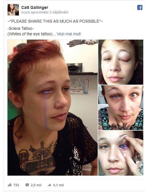 Ce s-a întâmplat cu o tânără după ce a decis să-şi tatueze globul ocular – FOTO