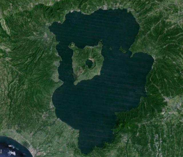 Pe Google Earth a fost înregistrată o formaţiune de acest fel ce prezintă o mică insulă aflată în craterul unui lac de pe o insulă numită Volcano care se află în lacul Taal de pe insula Luzon din Filipine. Timp de o perioadă lungă de timp acest fenomen a fost considerat cel mai mare observat cu Google Earth, însă o formaţiune mult mai mare se află în nordul Canadei.