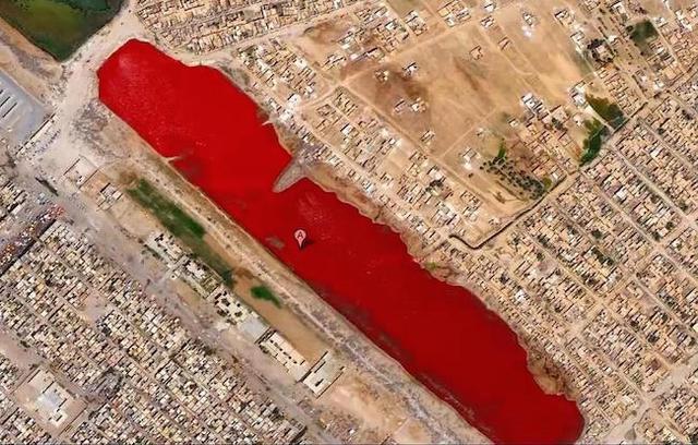 În apropiere de oraşul Sadr din Irak se află un lac de un roşu asemănător sângelui. Până în prezent nu a fost prezentată o explicaţie oficială a culorii ciudate a apei.