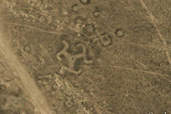 Cu acest sistem s-au descoperit peste 50 de geoglife în zona nordică a Kazakhstanului din Asia Centrală, inclusiv forme asemănătoare svasticei. Deşi modelul svasticei a fost creat dintr-un material lemnos, multe dintre geoglife sunt realizate din movile de pământ. Geoglifele par să fi fost create în urmă cu 2.000 de ani. În acea perioadă, svastica nu era un simbol comun în Europa şi Asia, de asemenea nu era afiliat niciunei organizaţii politice.