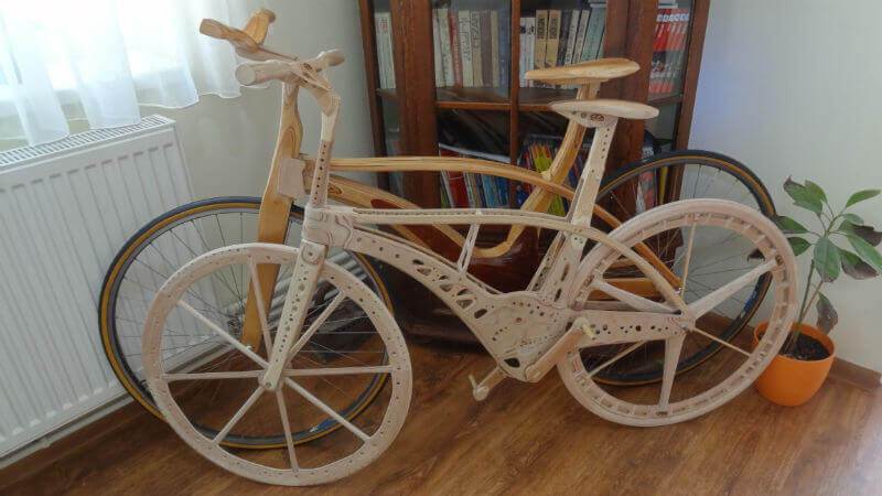 Home » D:News » La Arad a fost creată cea mai uşoară bicicletă de lemn din lume. Cântăreşte sub 3 kilograme