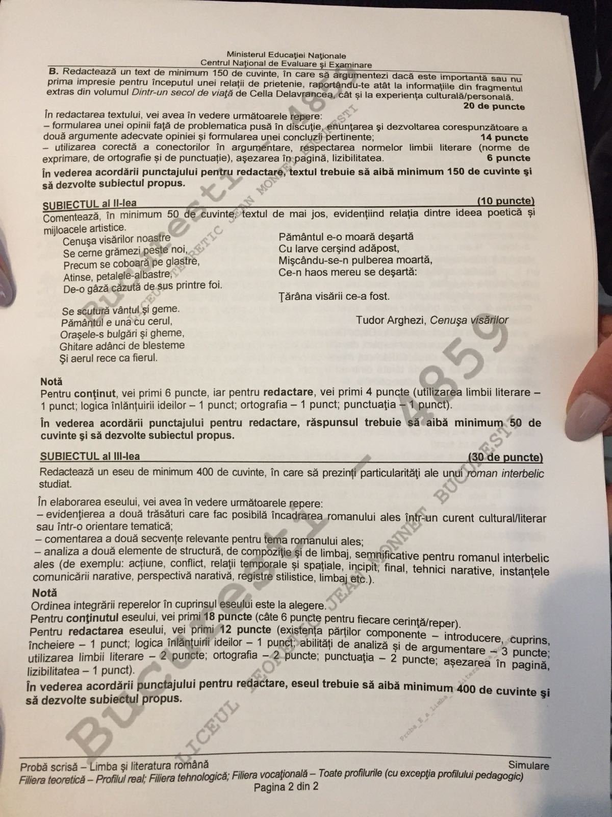 Subiectele la română la simularea bacalaureatului 2018, clasa a XI-a, profil real: