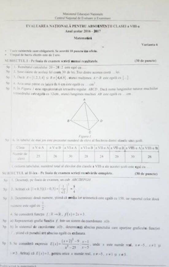 EVALUARE NAŢIONALĂ 2018 MATEMATICĂ. SUBIECTE şi BAREM. De asemenea, în săli, candidaţii nu vor avea acces cu telefoanele mobile, manuale, fişe sau alte materiale care ar putea reprezenta surse de inspiraţie. Vor putea intra doar cu buletinul sau certificatul de naştere.