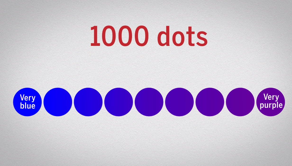 În ultimele 200 de teste, participanţii au văzut punctele identificate anterior ca mov, albastre, conceptul culorii fiind practic modificat. „Atunci când prezenţa punctelor albastre a scăzut, conceptul de albastru al participanţilor a crescut pentru a include punctele pe care anterior le-a exclus”, a declarat David E. Levari din cadrul Universităţii Harvard.
