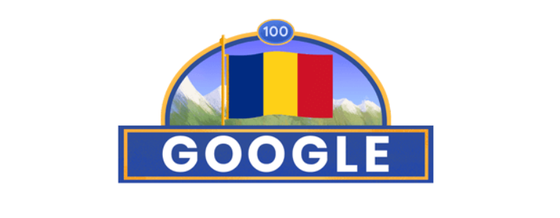 Acesta ilustrează un tricolor fluturând, numele companiei Google şi cifra 100, de la Centenar. În imagine apar şi munţii Carpaţi.