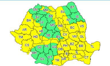 Atenţionare meteorologică de vreme rea pentru majoritatea ţării