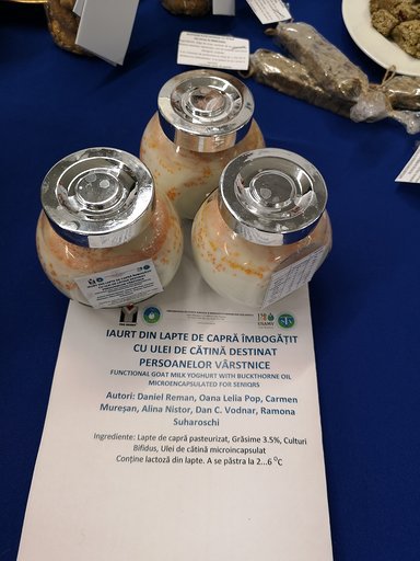Un alt produs care foloseşte cătina, iaurtul de capră îmbogăţit cu microcapsule de cătină, a fost prezentat de un student. Acest tip de iaurt este indicat în special vârstnicilor.