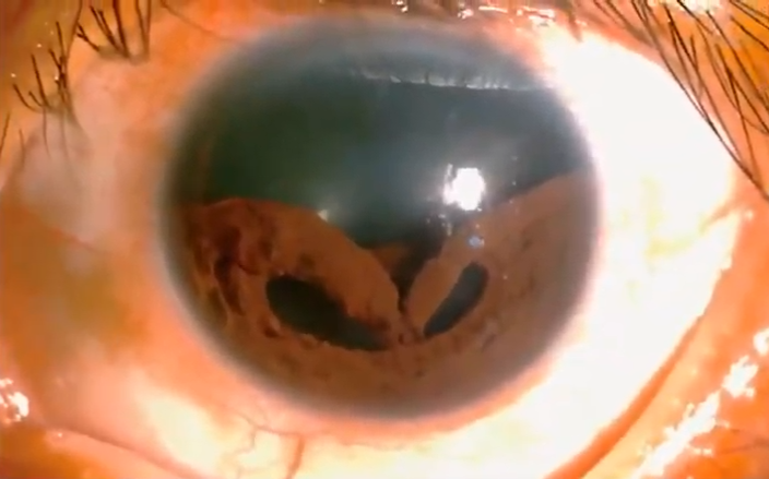 Irisul era detaşat de la „poziţia de ora 9 la poziţia de ora 3” şi „s-a încovoiat în jos”, au scris specialiştii.
