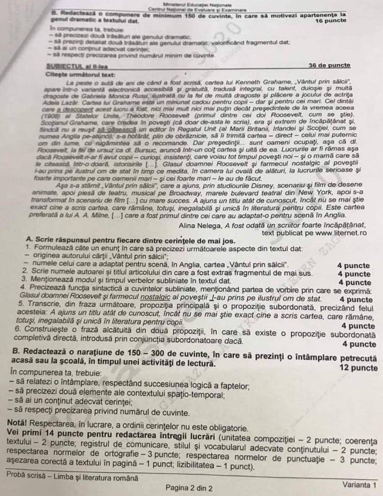 „Probele încep la ora 9:00, accesul elevilor în săli fiind permis până la ora 8:30. Timpul destinat elaborării unei lucrări scrise este de două ore, din momentul în care s-a încheiat distribuirea subiectelor fiecărui elev. Probele sunt monitorizate audio-video. Candidaţii trebuie să aibă asupra lor un act de identitate şi instrumente de scris cu cerneală sau pastă albastră pentru redactarea lucrărilor, creion negru pentru realizarea desenelor/schemelor şi instrumente de desen la proba de Matematică”, mai arată sursa citată.