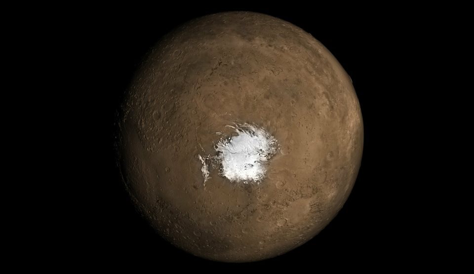 Într-un mod asemănător Pământului, cei doi poli ai lui Marte găzduiesc peisaje şi fenomene interesante. Conform oamenilor de ştiinţă, în timpul iernii, cele două regiuni sunt acoperite cu zăpadă din dioxid de carbon condensat.