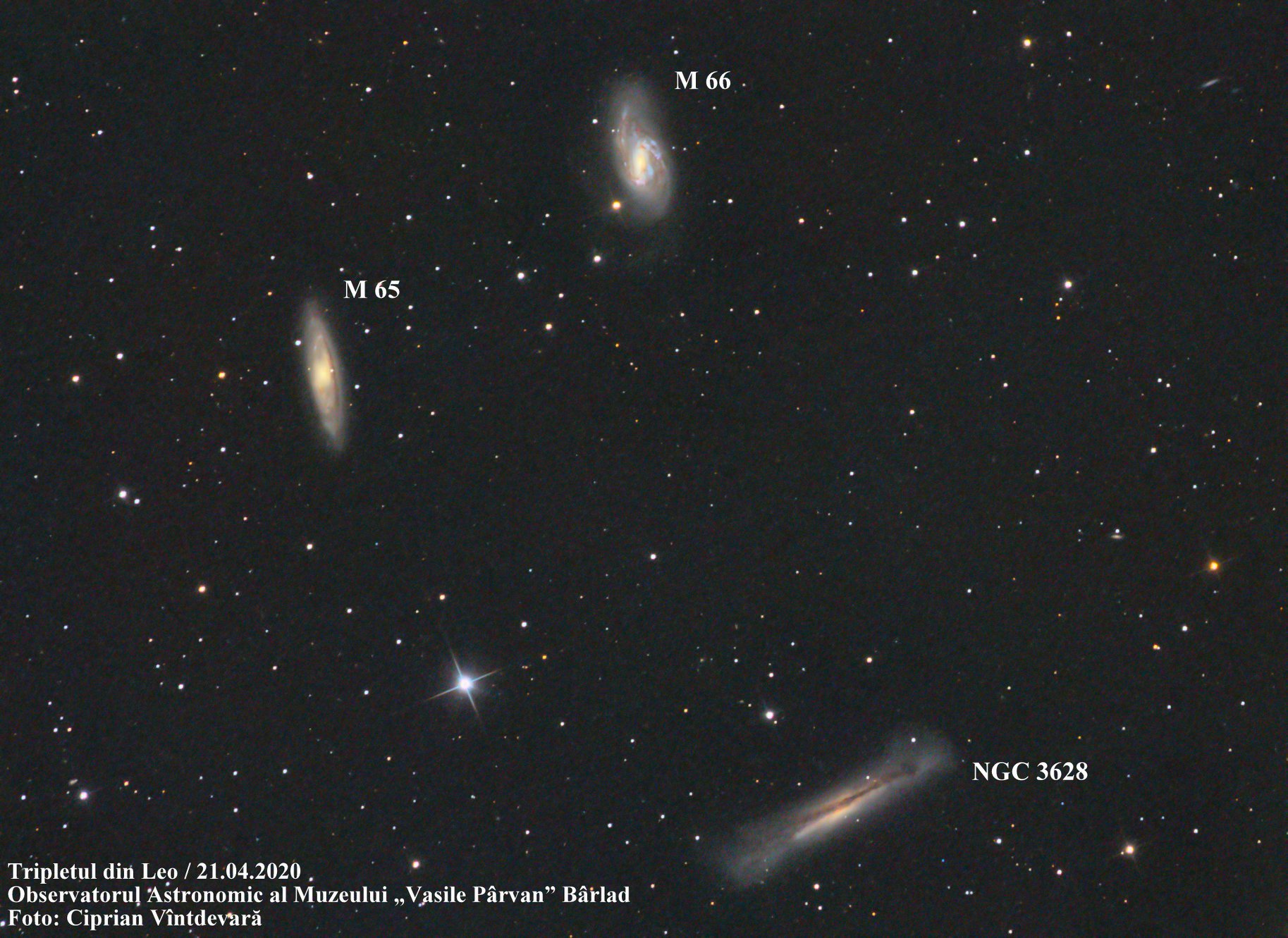 „Tripletul din Leo este format din trei galaxii situate la o distanţă de aproximativ 35 milioane ani lumină în dreptul constelaţiei Leul, de pe cerul de primăvară”, a afirmat Ciprian Vîntdevară pe pagina lui de Facebook.