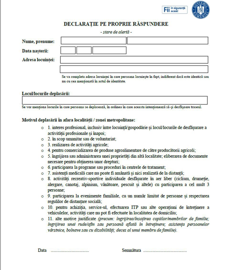 Click pentru a mări şi descărca declaraţia pe propria răspundere necesară în starea de alertă!