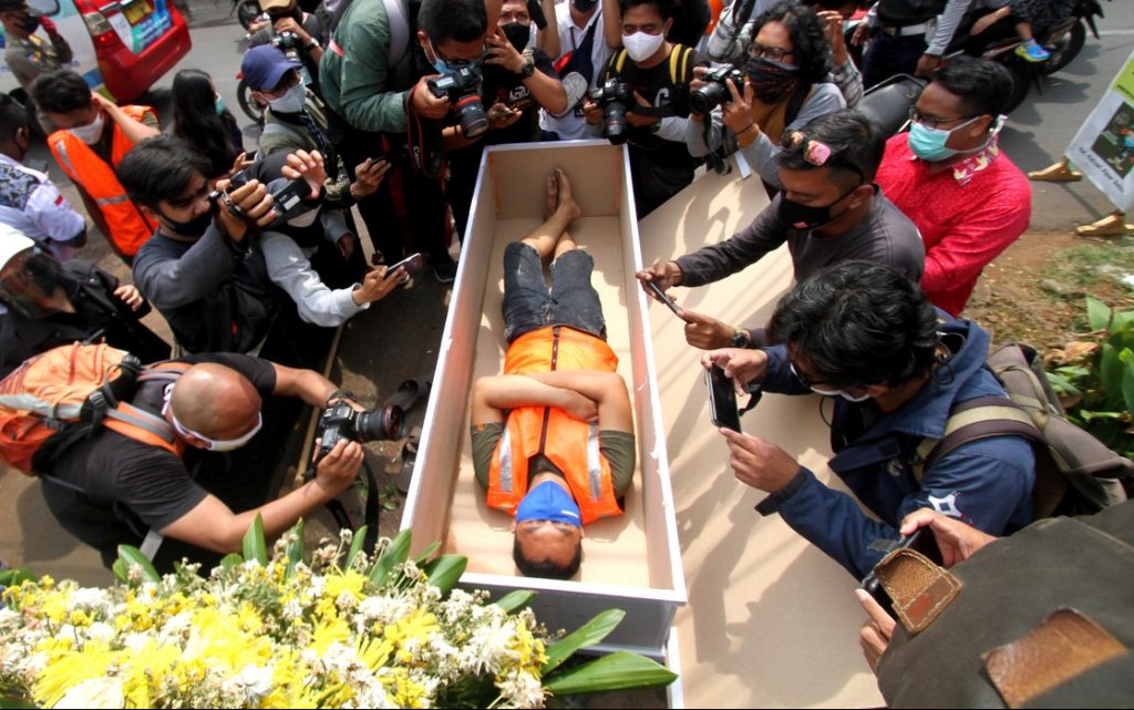 Indonezia renunța la pedeapsa prin care localnicii fără mască de protecție erau băgați într-un sicriu. Conducerea statului asiatic cedează presiunilor publice. Pedeapsa fusese introdusă în urmă cu doar două zile. Indonezia este una dintre ţările … Continuă lectura Pedeapsă șocantă în vreme de pandemie. Cei care nu poartă mască de protecție erau băgați în sicriu