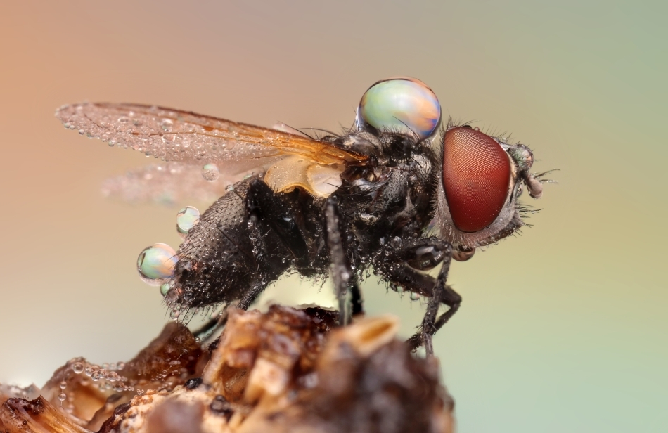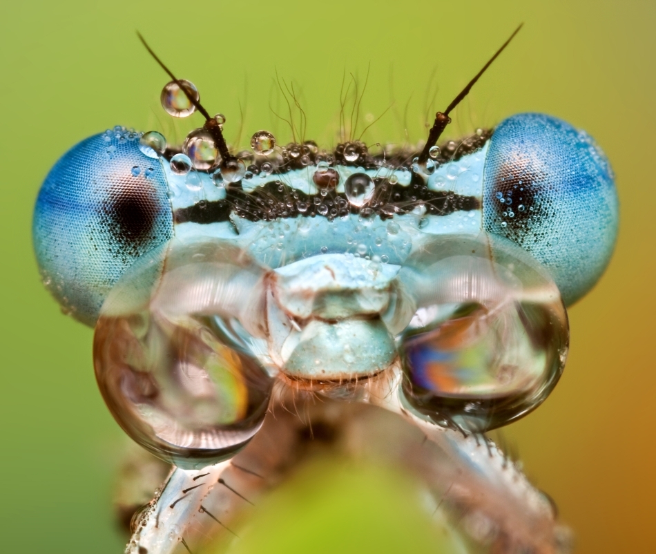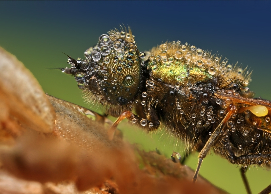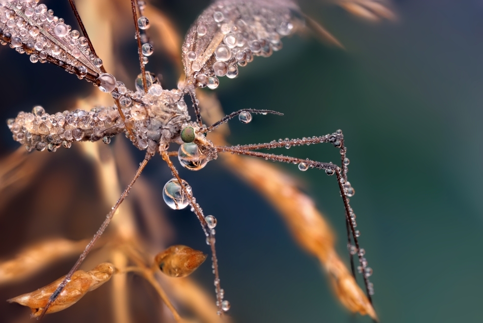 Artistul fotografiază insectele la câteva momente după ce acestea au fost acoperite de picături de ploaie, obţinând astfel un efect unic.