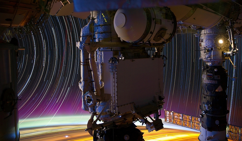 Inginerul de zbor Don Pettit a folosit tehnica expunerii pe perioade îndelungate, de 10-15 minute, pentru a obţine imagini de tip „star trail”, în care stelele şi luminile de pe Terra lasă „urme”. Efectul obţinut este unul spectaculos, similar celuia imaginat în filmele SF în momentul călătoriilor intergalactice.