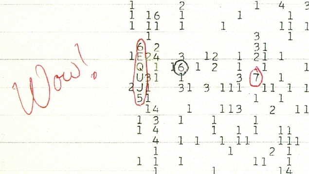 În cele 4 decenii de când oamenii caută extratereştri cu ajutorul radiotelescoapelor, singura dată când a fost înregistrată o serie de date a căror origine ar putea fi extraterestră a fost în 1977. Observatorul de la Universitatea Ohio State a înregistrat pe 15 august 1977 o transmisiune radio puternică, ce durat 72 de secunde şi care părea să vină din direcţia constelaţiei Sagittarius. Cele 72 de secunde de date au fost supranumite „semnalul Wow!”, deoarece astronomul Jerry Ehman, cel care era însărcinat să studieze datele înregistrate, a scris cu pixul „Wow!” pe foaia pe care erau tipărite surprinzătoarele date înregistrate din spaţiu.