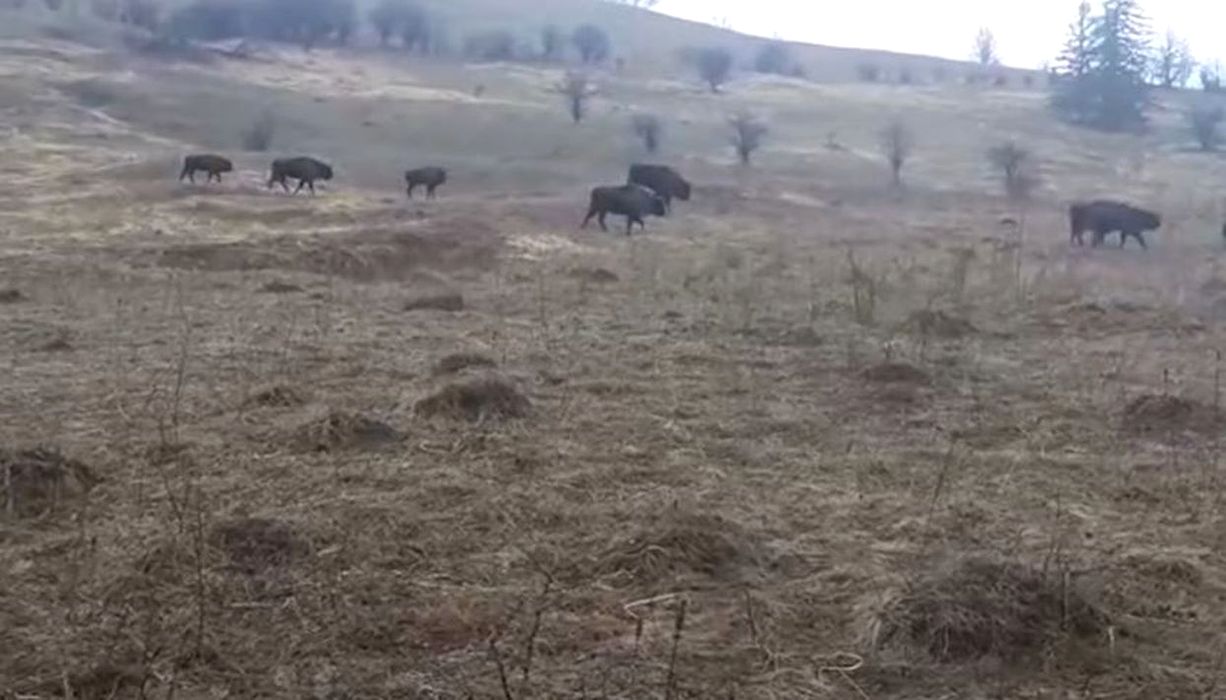 Imagini foarte frumoase cu o turmă de zimbri pe Valea Cracăului