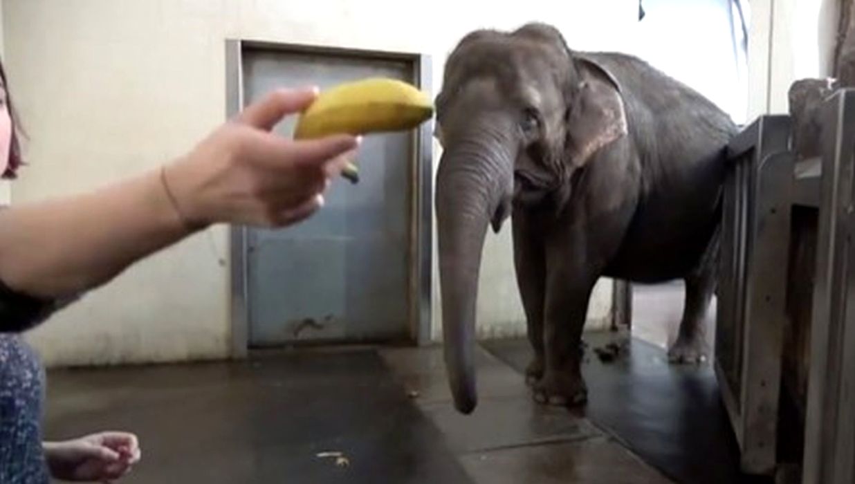 Un elefant de la Grădina Zoologică din Berlin a învățat să-și desfacă singur bananele