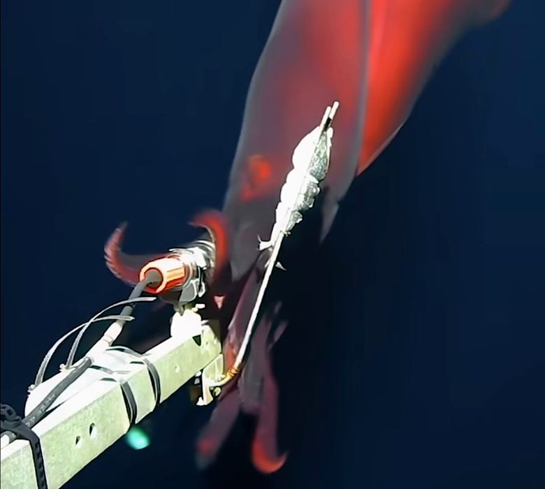 Filmare rară din adâncuri: calamarul-caracatiță cu cele mai mari lumini biologice din lume
