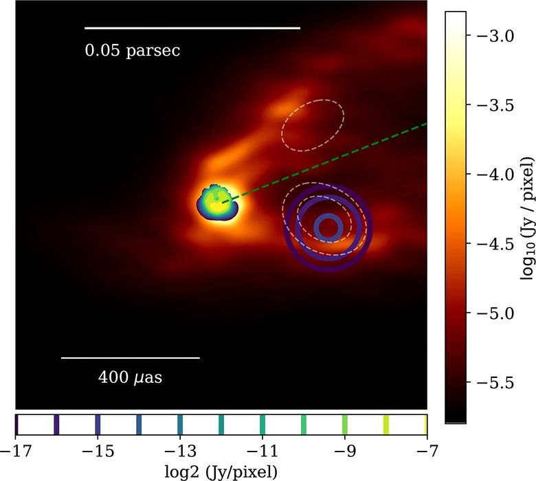 Prima gaură neagră fotografiată de omenire a lansat un jet cosmic lung de 3.000 de ani-lumină