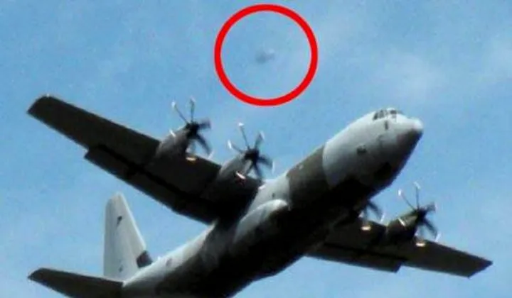 Un OZN a fost fotografiat urmarind un avion Hercules