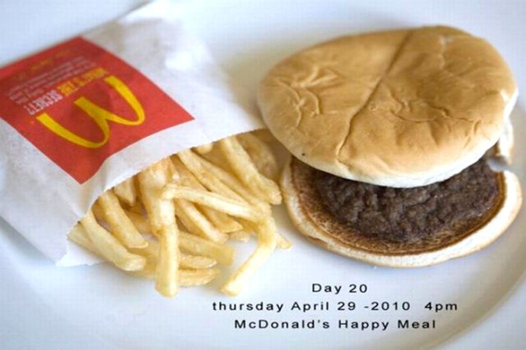 In ciuda avertismentelor medicilor, care sustin constant ca mancarea de tip fast food consumata excesiv este daunatoare pentru organismul uman, hamburgerul si cartofii prajiti sunt, in acest moment, cel mai popular fel de mancare de pe Terra. Popular si, dupa cum vom vedea, permanent. O demonstreaza o fotografa New-Yorkeza, Sally Davies, care a intreprins un experiment inedit, fotografiind acelasi meniu compus din hamburgeri si cartofi prajiti zi de zi, vreme de 137 de zile. Chiar si dupa patru luni si jumatate, cele doua componente de baza ale fast food-ului arata aproape la fel ca in prima zi. Incredibil si ciudat, nu?