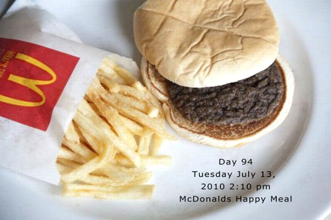 In ciuda avertismentelor medicilor, care sustin constant ca mancarea de tip fast food consumata excesiv este daunatoare pentru organismul uman, hamburgerul si cartofii prajiti sunt, in acest moment, cel mai popular fel de mancare de pe Terra. Popular si, dupa cum vom vedea, permanent. O demonstreaza o fotografa New-Yorkeza, Sally Davies, care a intreprins un experiment inedit, fotografiind acelasi meniu compus din hamburgeri si cartofi prajiti zi de zi, vreme de 137 de zile. Chiar si dupa patru luni si jumatate, cele doua componente de baza ale fast food-ului arata aproape la fel ca in prima zi. Incredibil si ciudat, nu?