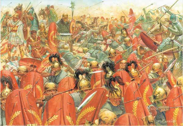 În dimineaţa zilei de 24 iunie, soldaţii aflaţi sub comanda lui Flaminius îşi întâlnesc rivalii în apropierea lacului Trasimene. Hannibal, reuşea, astfel, să îi atragă pe romani într-o capcană.