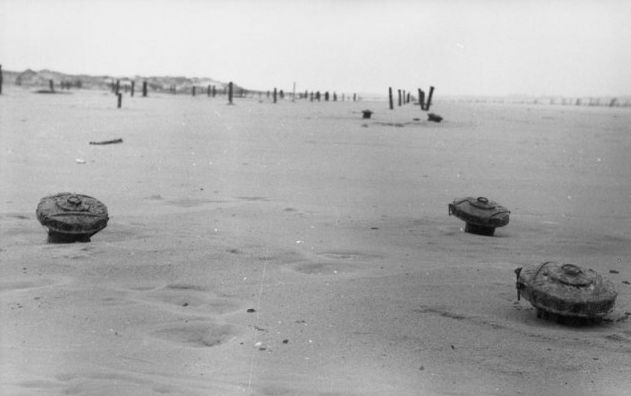 Mine antipersonal dispuse pe o plajă din Pas de Calais (Foto:warhistoryonline.com/Bundesarchiv)