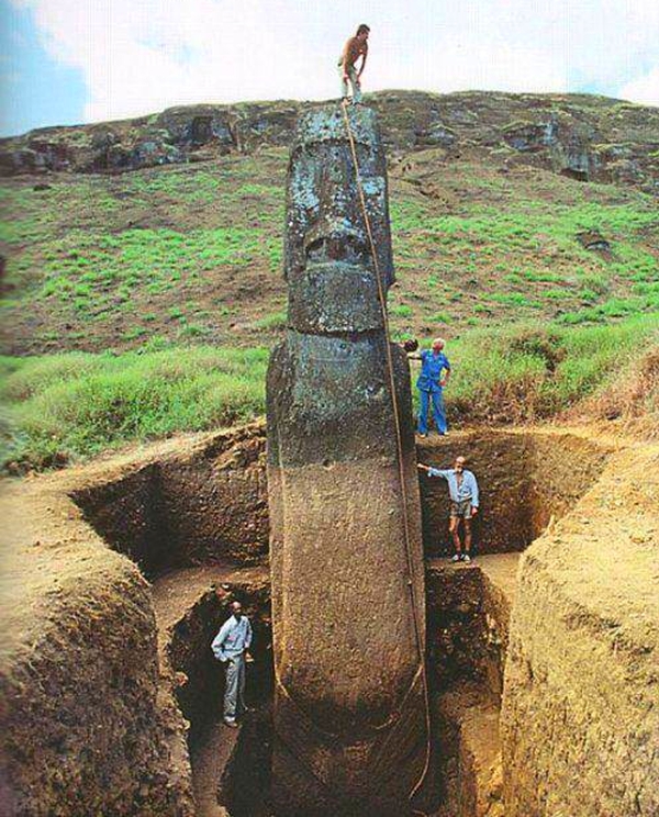 Cea mai înaltă figură construită este cunoscut sub numele de „Paro” şi are aproape 10 metri înălţime. Remarcabil, există peste 887 de Moai pe insulă. În timp ce comunitatea arheologică conştientiza încă din 1914, când a avut loc expediţia Mana cu Katherine Scoresby Routledge, că aceste capete de piatră au corpuri, demonstrarea acestui lucru pare să fi luat prin suprindere o parte din public.