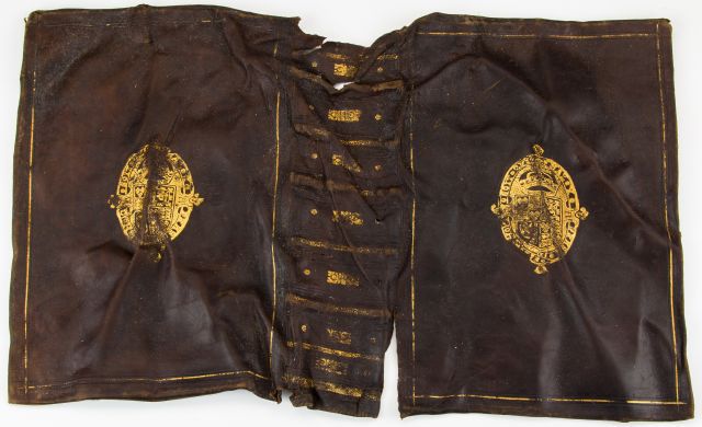 Emblemele regale de pe coperţile cărţilor din piele au fost identificate ca aparţinând regelui Carol I al casei regale Stuart. Se pare că această femeie a fost un membru al acestei familii regale .