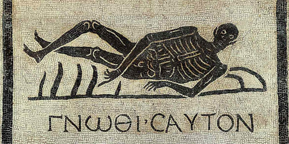 Descris ca fiind un „schelet nesăbuit”, mozaicul care-l conţine a fost excavat în provincia Hatay, de la graniţa turco-siriană. În această zonă se află oraşul antic greco-roman Antiocheia, foarte prosper cândva. A fost găsit alături de alte două scene mozaice care, potrivit arheologilor de la Muzeul de Arheologie Hatay, împodobeau sala de mese a unei case cu statut social superior în timpul secolului III î.Hr.