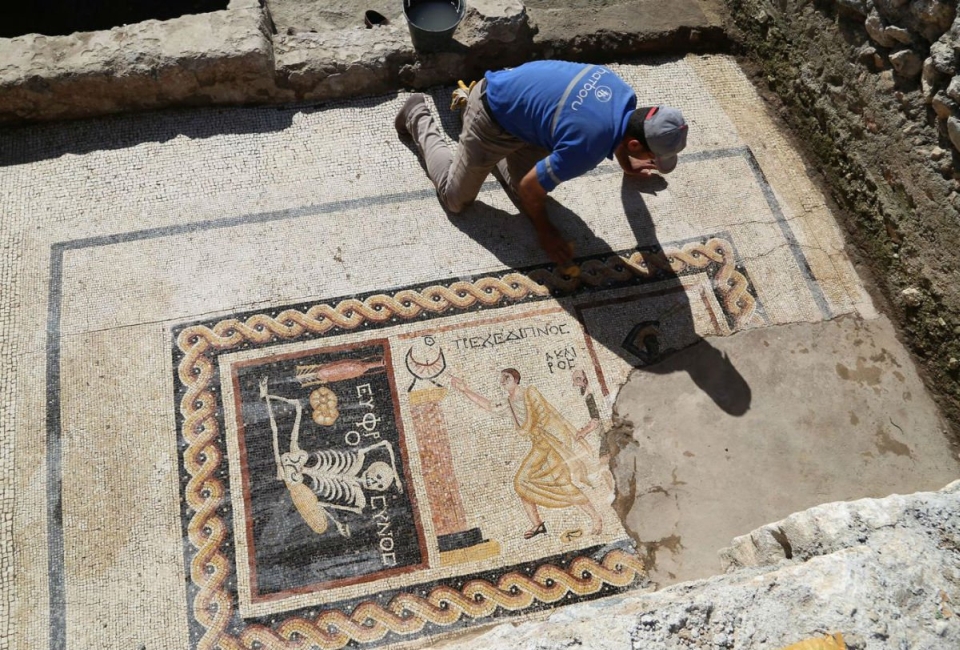 Potrivit lui Kara, acesta nu este primul schelet pe mozaic care datează din această perioadă. Unul similar a fost descoperit la Pompei, Italia, reprezentând un schelet care ţinea două ulcioare demostrând că este gata de petrecere.