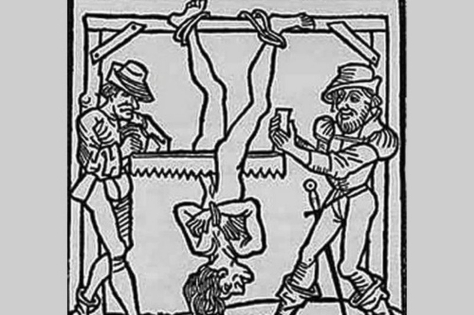 Pe lângă faptul că era extrem de dureroasă metoda de tortură, aceasta mai era şi malefic de ingenioasă. Victima era suspendată cu capul în jos, legată de picioare, care erau foarte îndepărate unul de celălat, şi se tăia în două. Procesul începe în zona dintre picioare şi continua până spre cap. Deseori călăii se opreau când ajungeau în zona abdomenului pentru a lăsa victima să sufere chinuri groaznice şi să moară din cauza hemoragiei.