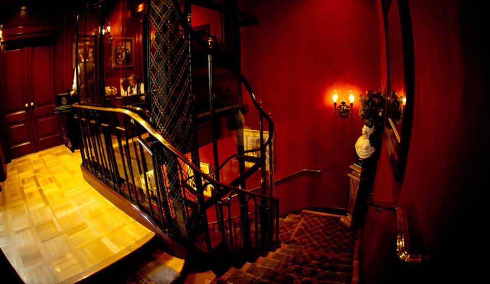 Pentru a intra în local, invitaţii trebuiau să apese pe o sonerie sau un interfon conectat cu un panou ascuns lângă uşă. Pentru cei care nu erau membri, un recepţionist întreba numele rezervării şi, dacă totul era în regulă, deschidea uşa către o curte numită Court d’Anges. Membrii şi invitaţii erau apoi conduşi la etaj, în una din cele două camere: The Grand Salon sau Le Salon Nouveau. Liftul era o replică exactă a unui alt lift văzut de Disney într-o vacanţă în Paris.